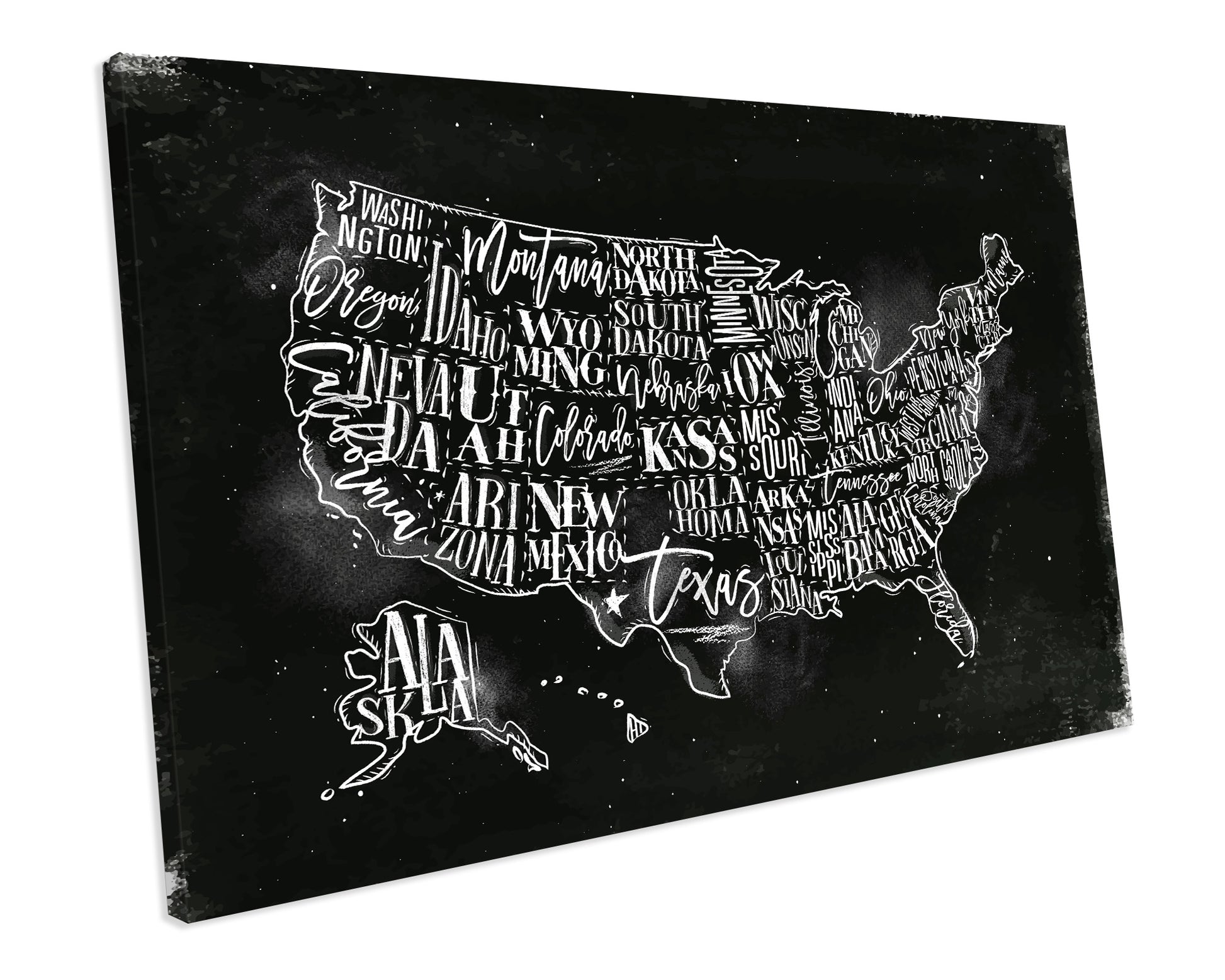 America And States Atlas Chalk CANVAS WALL ART Box Framed Picture Print