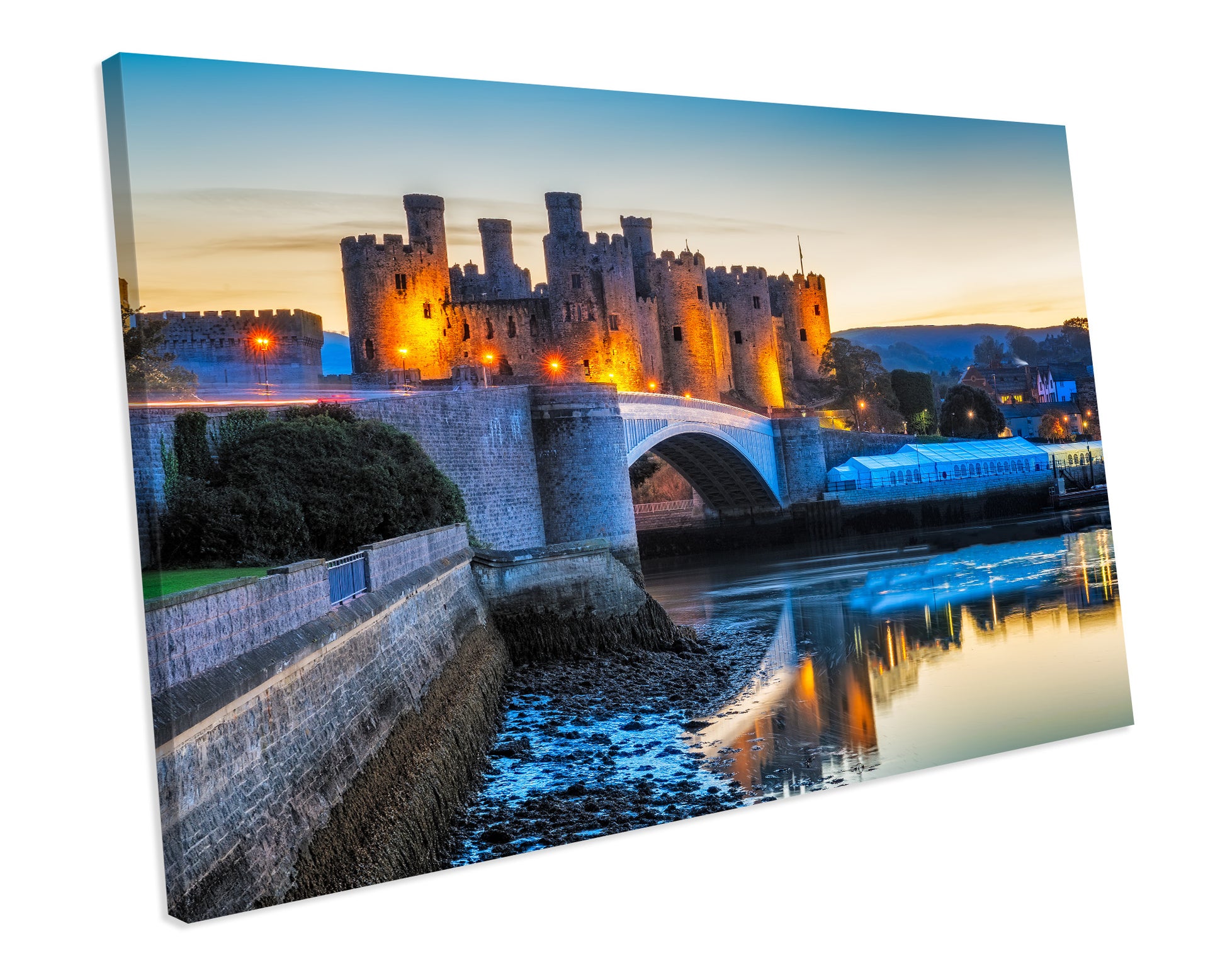 Conway Castle Wales Sunset Landmark Box Framed Canvas Art Print