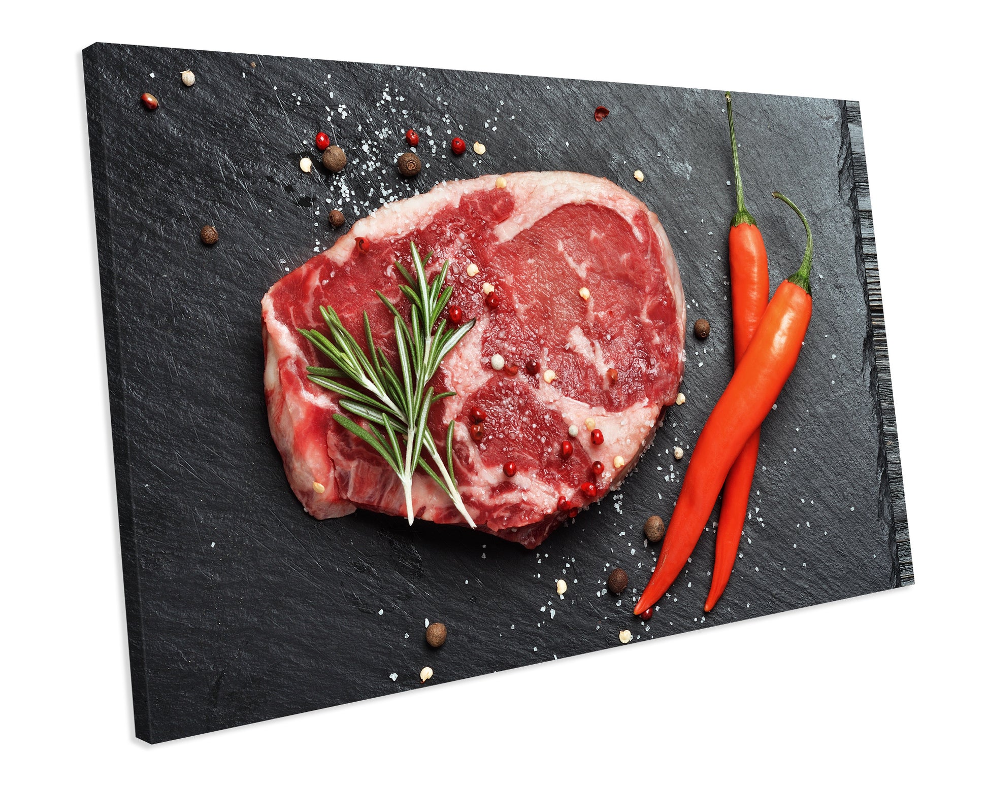 Black Angus Rib Eye Beef Steak Food Kitchen CANVAS WALL ART Box Framed Picture Print
