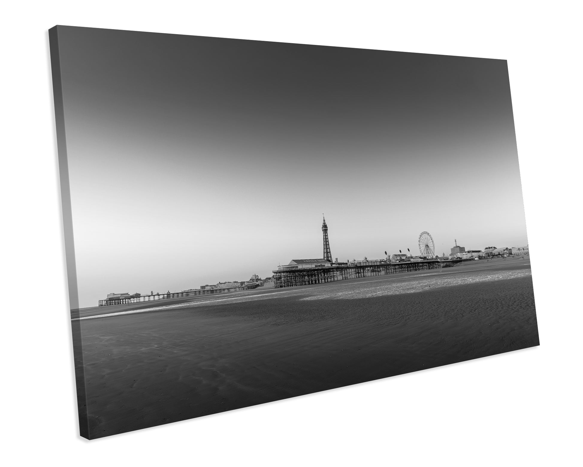 Black & White Blackpool Beach CANVAS WALL ART Box Framed Picture Print