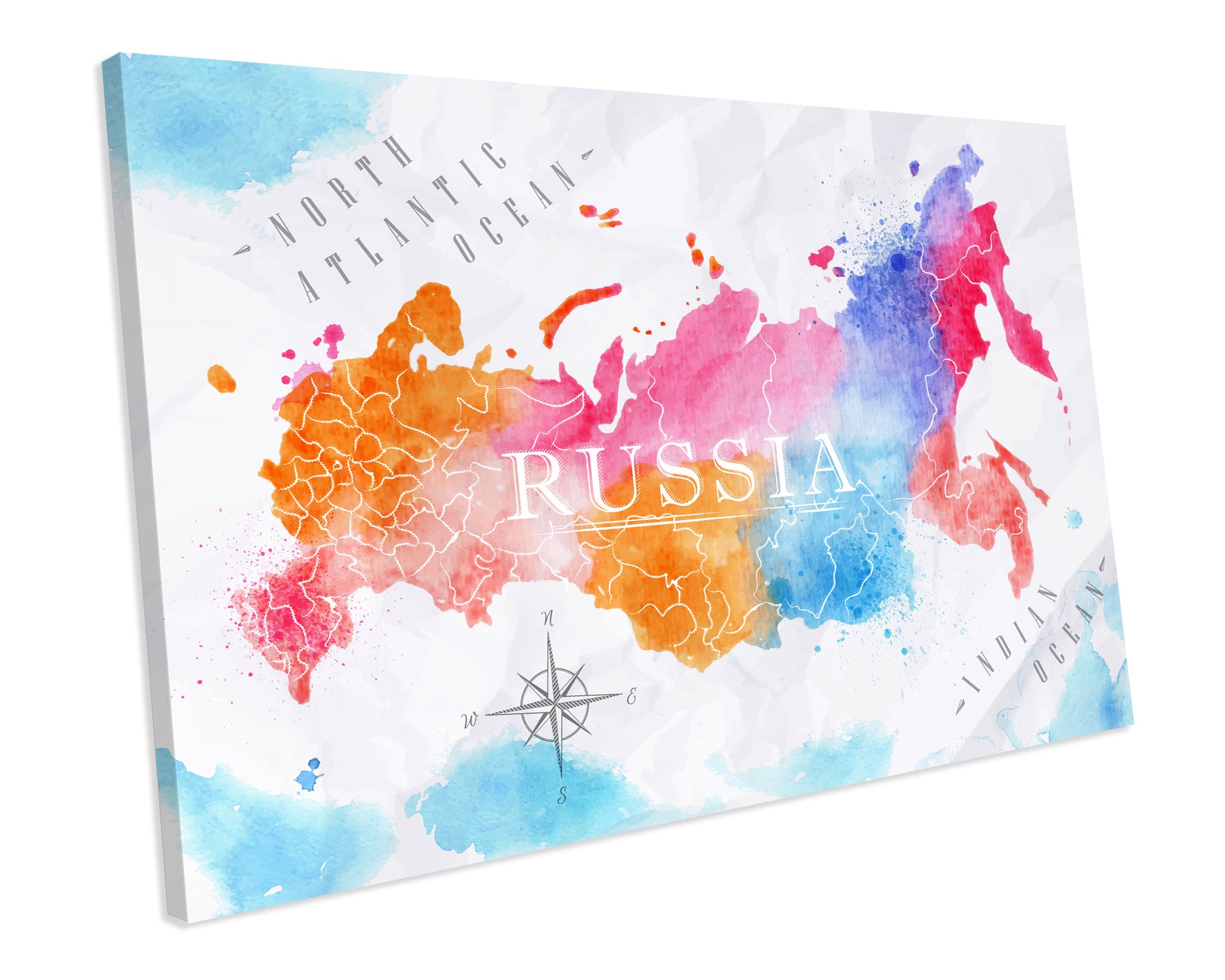 Russia Continent Map of The World Atlas Watercolour CANVAS WALL ART Box Framed Picture Print