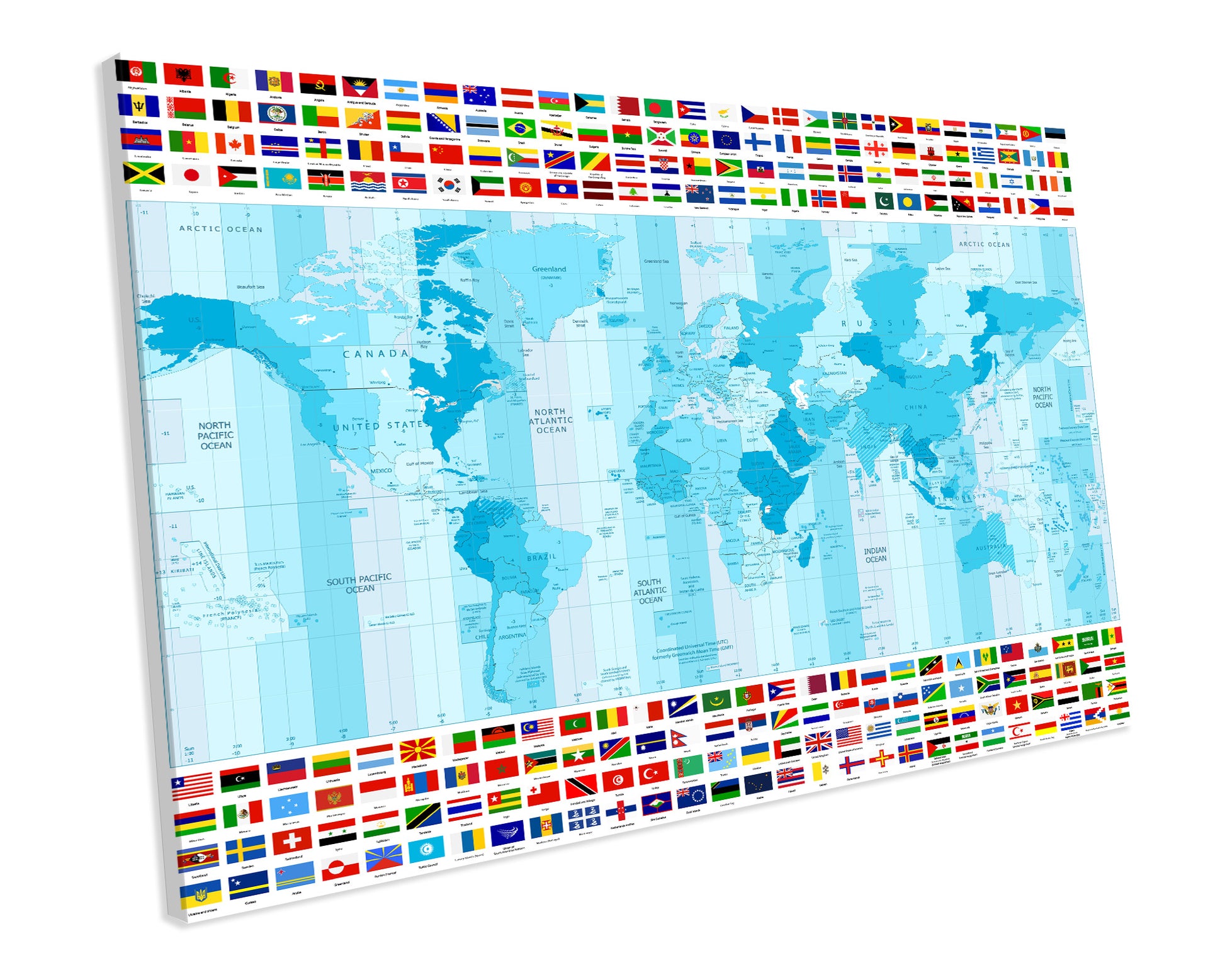 Detailed Map of The World With Flags Atlas CANVAS WALL ART Box Framed Picture Print