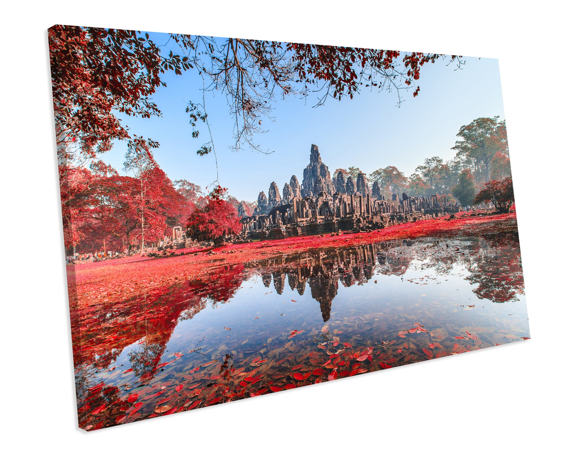 Bayon Castle Cambodia Red CANVAS WALL ART Box Framed Picture Print