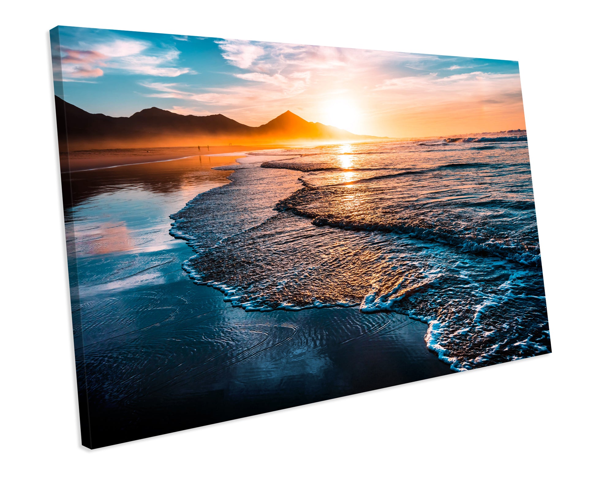 Sunset Beach Seascape CANVAS WALL ART Box Framed Picture Print