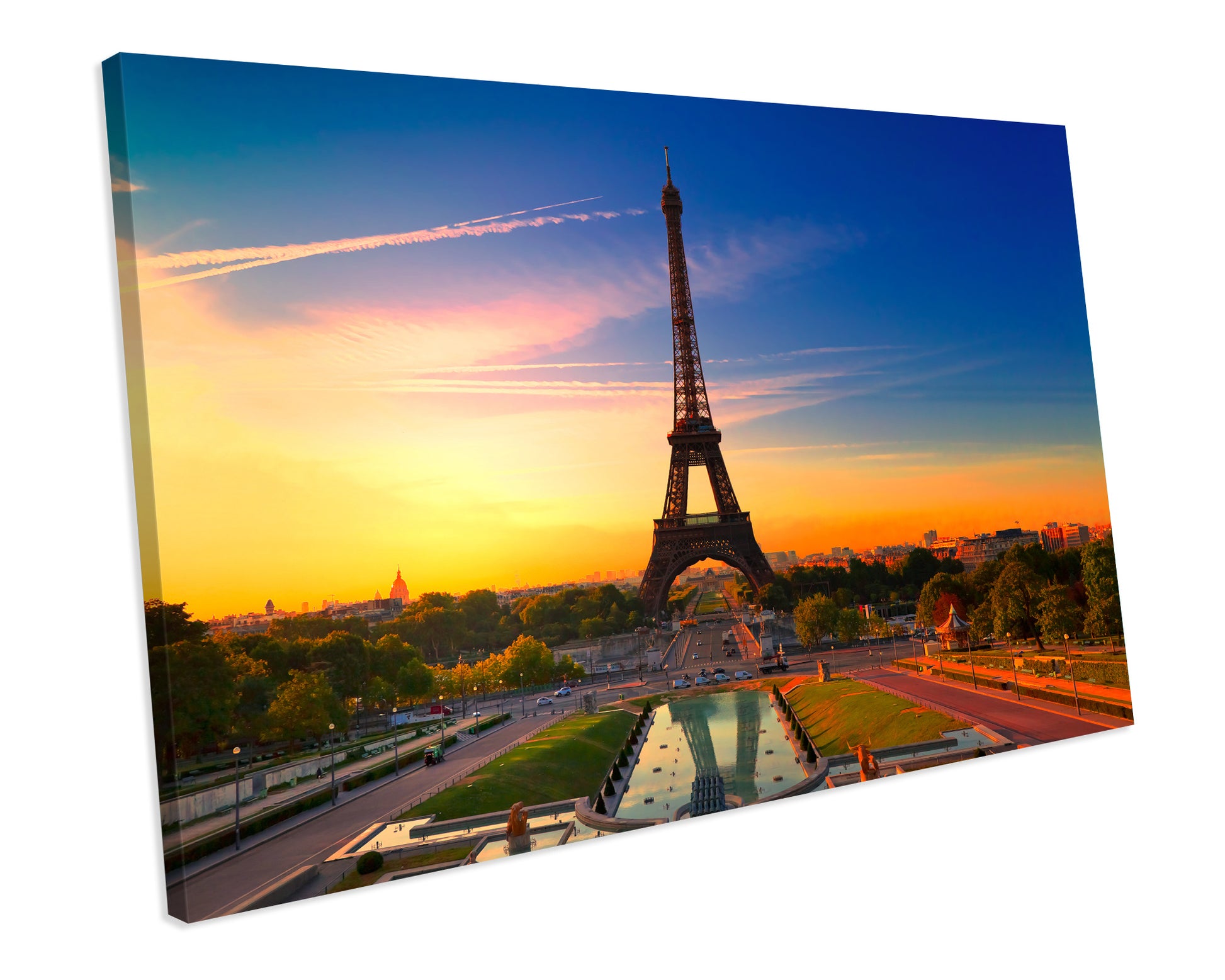 Eiffel Tower Sunset CANVAS WALL ART Box Framed Picture Print