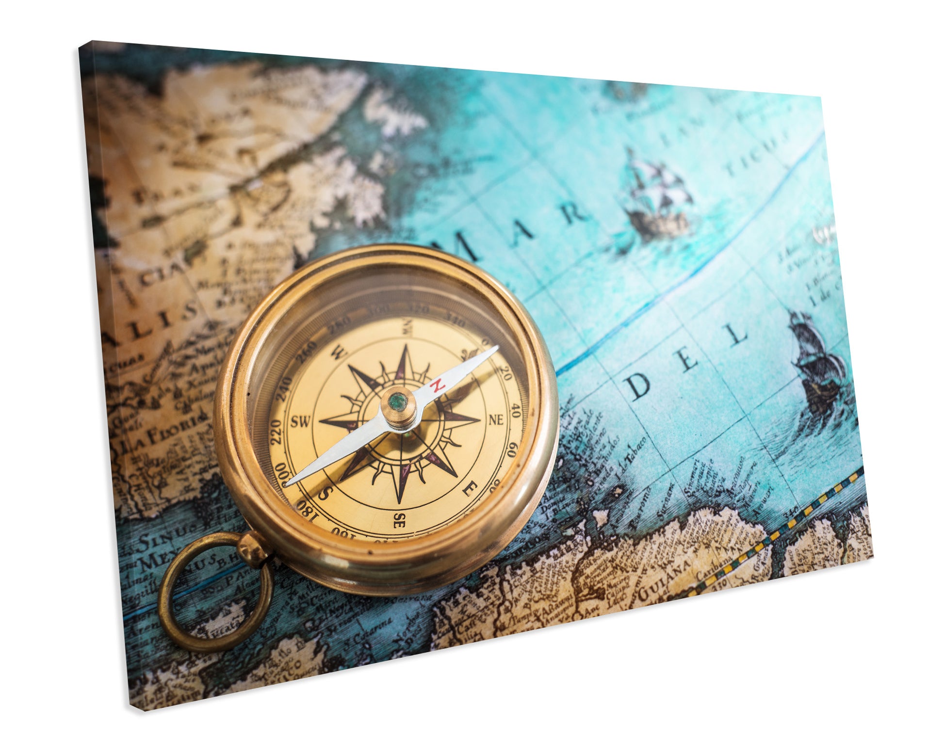 Vintage Compass Map of The World Atlas CANVAS WALL ART Box Framed Picture Print