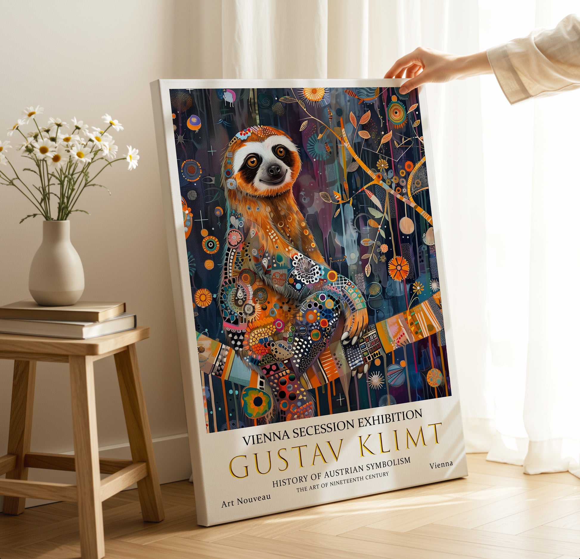 Gustav Klimt Sloth Wall Art – Whimsical Symbolist Jungle Decor