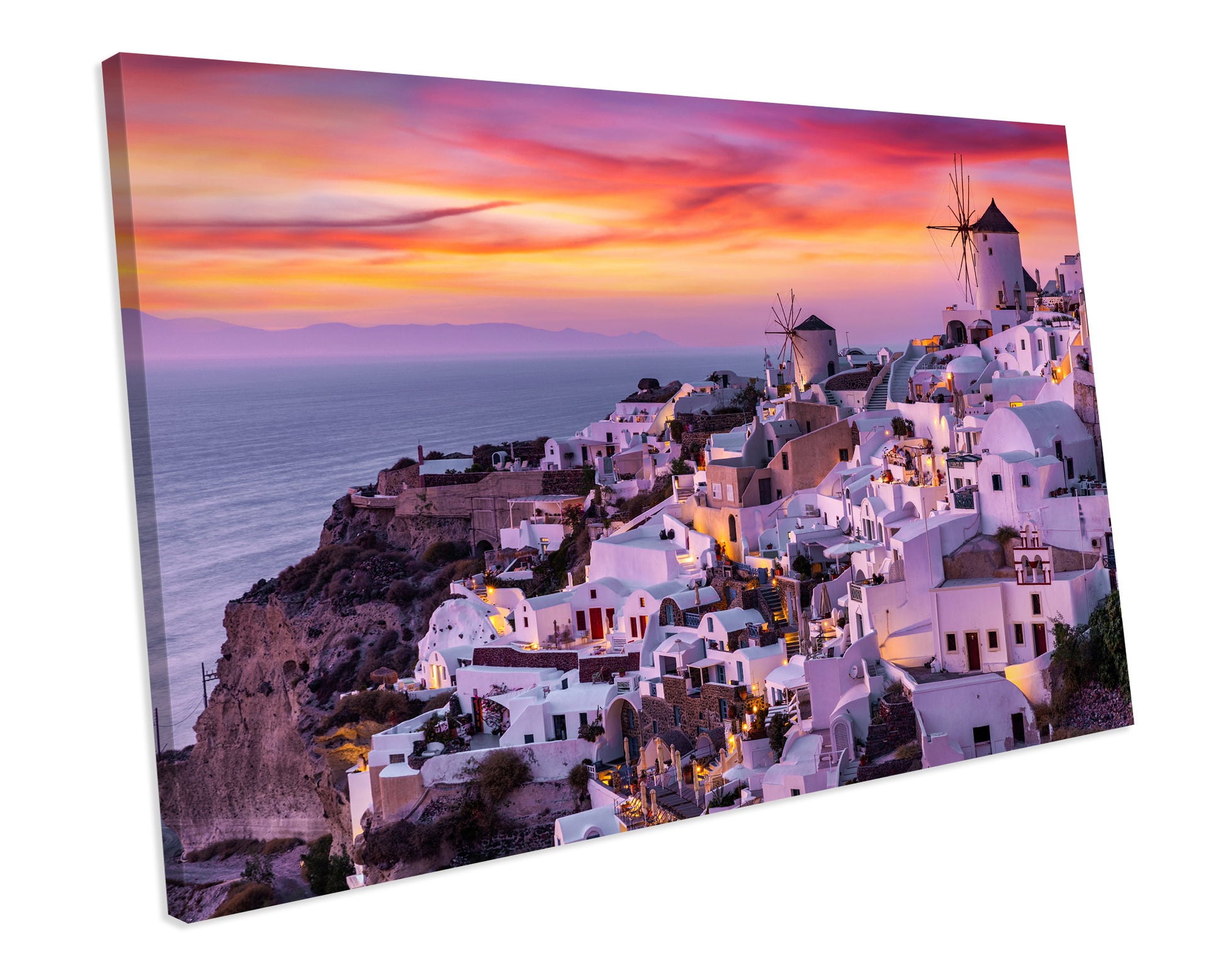 Pink Sunset Santorini Greece Framed Canvas Print Wall Art