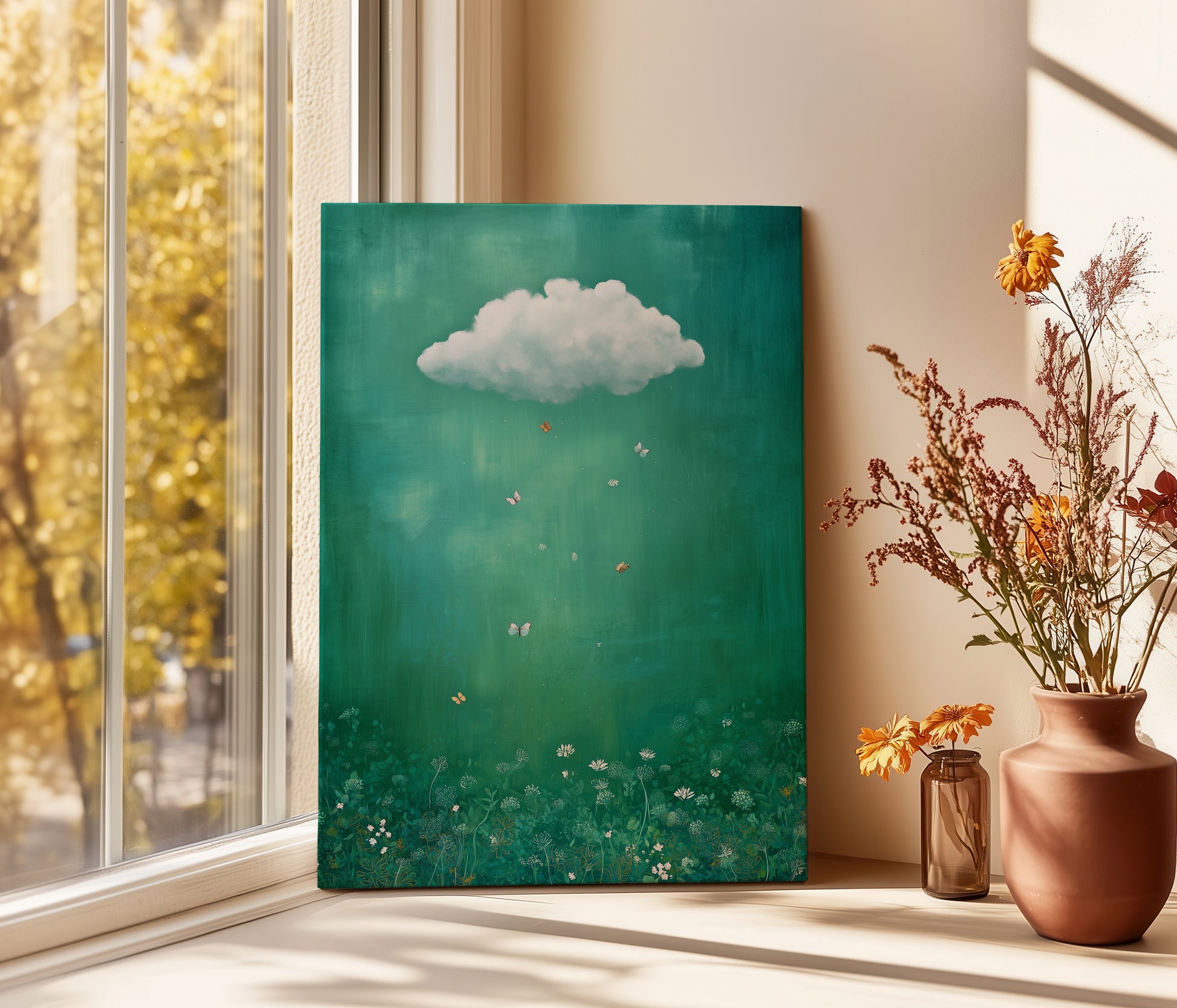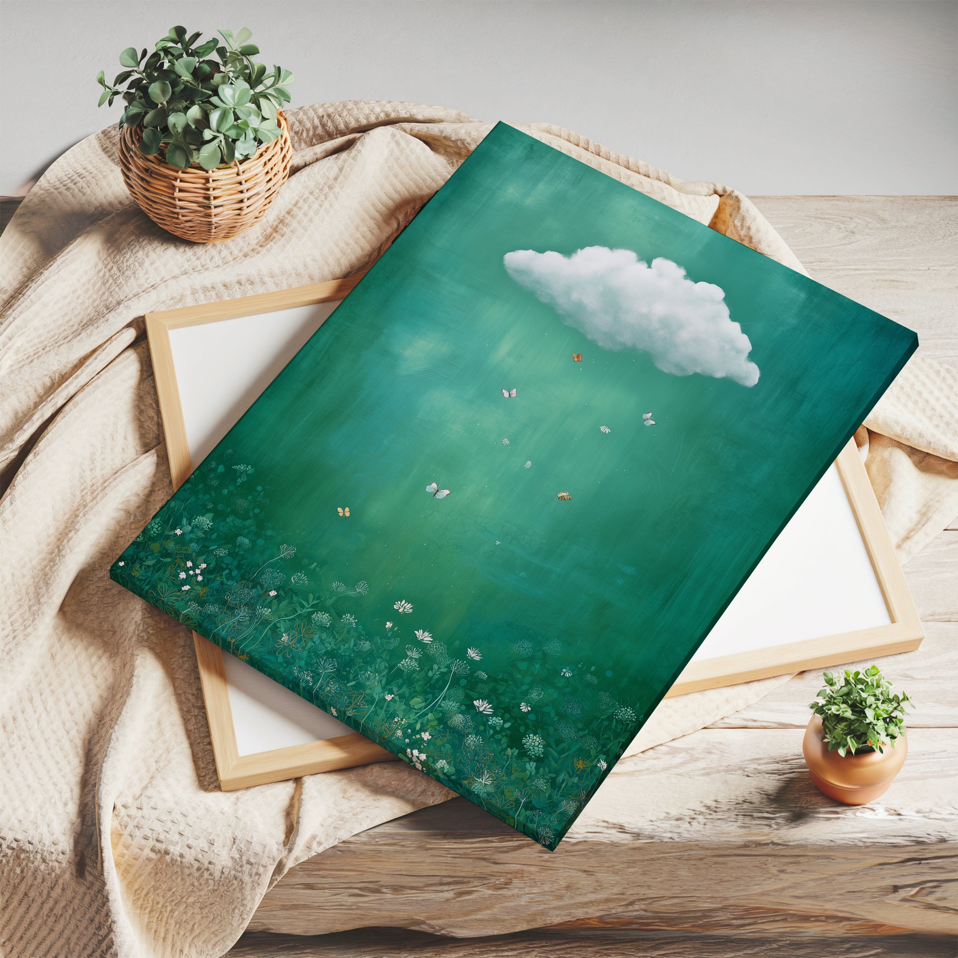 Wildflower Cloud Print – Minimalist Wall Art - Maximalist Home Decor - Teal Cloud Framed Canvas