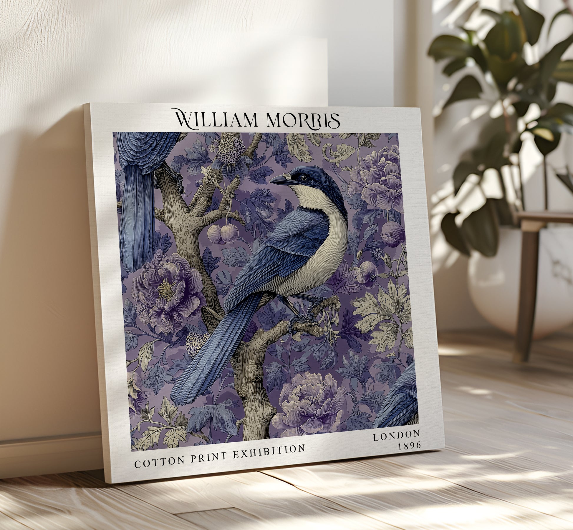 William Morris Canvas Print – Botanical Wall Art - Purple Magpie Exhibition Print - Floral Framed Canvas